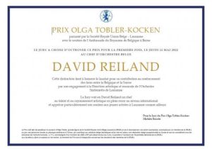 Jeudi 12 mai 2022 - Remise du Prix Olga Tobler-Kocken à David Reiland