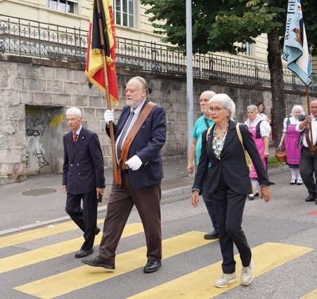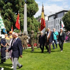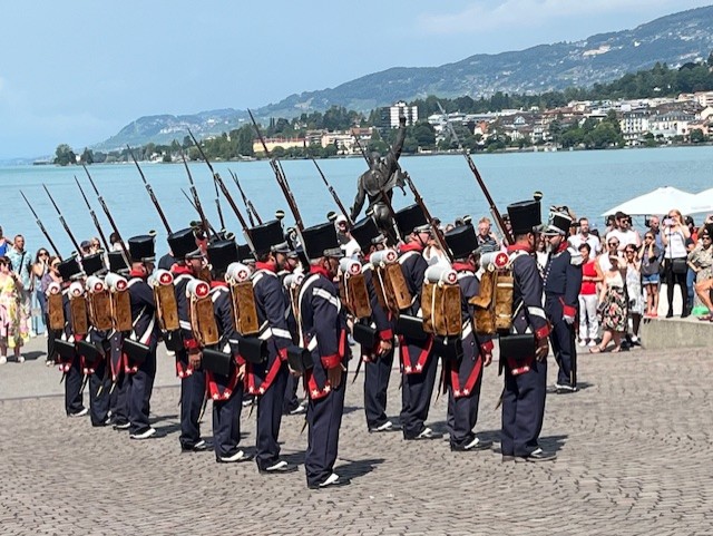 A Montreux, Anthony Huys, le fidèle et digne porte-drapeau, Yolande Dupret, la présidente, et deux membres de la SRUB-L, Léon Cerise et Xavier Steyer ont suivi la cérémonie et le discours du syndic M. Olivier Gfeller devant la Stèle du Soldat. Ensuite ils ont intégré le cortège jusqu’à la Place couverte du Marché au bord du Lac. De sociétés locales et milices vaudoises, des grenadiers et arquebusiers, des groupes folkloriques ont défilé devant une foule enthousiaste au son des fanfares. La manifestation festive s’est terminée par une collation helvétique et un vin d’honneur local au Marché couvert au bord du Lac sous un ciel radieux. Une manière sympathique de nouer des liens avec notre Canton hôte.