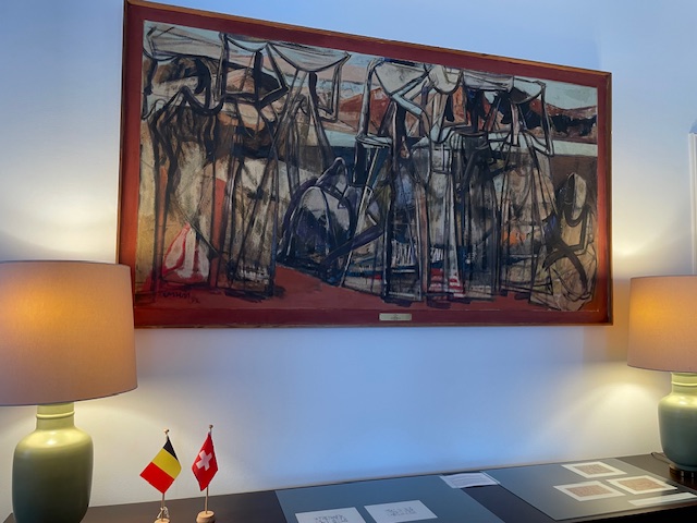 Une bonne vingtaine de membres de la SRUB-L et l’UBN ont eu le privilège de découvrir lors d’une exposition à la résidence de l’ambassade de Belgique à Berne, des œuvres du peintre avant-gardiste belge Floris JESPERS (1889-1965). La visite guidée était assurée par sa petite-fille, Anne-Lise Jespers, également peintre et résidant à Berne. C’était une occasion unique de découvrir le parcours de ce peintre anversois, principalement durant sa période africaine.